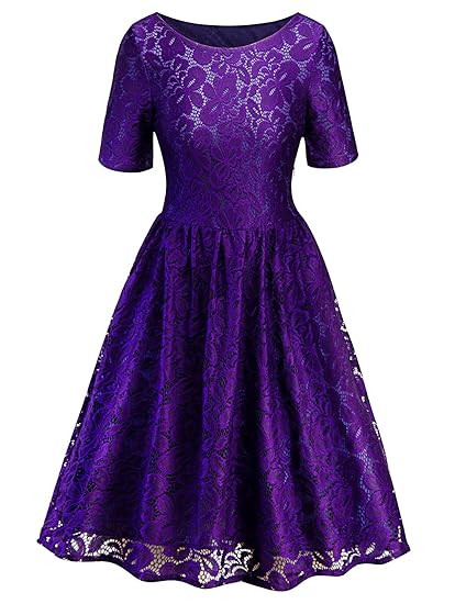 Amazon.com: LIANHHY Floral Print Lace Insert Vintage Dress Summer ...
